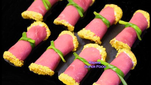Потрясная закуска, которая разлетается первой: Рулетики из ветчины с начинкой