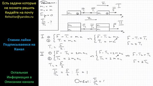 Физика На гладкой горизонтальной поверхности под действием силы F движутся одинаковые бруски связанные нитью. Во сколько раз изменится сила