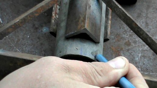 Если уголок положить ровно поперёк трубы, то можно сделать точную разметку для реза под 45 градусов. Нужная гаражная самоделка