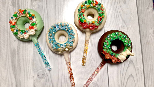 Мини торт ШОКОЛАДНЫЙ РОЖДЕСТВЕНСКИЙ ВЕНОК🎄Клубничные кейк попсы 🎂Сake pops! Просто и быстро!