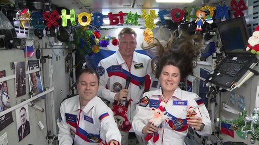 Российские космонавты создали новогоднее настроение в условиях невесомости