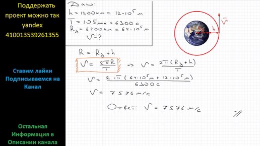 Физика Определите среднюю орбитальную скорость спутника, если средняя высота его орбиты над Землей равна 1200 км, а период обращения равен