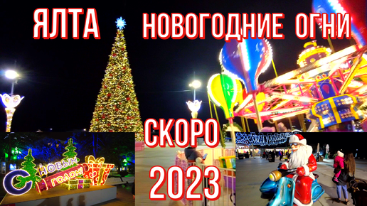 Новогодние огни Ялты. Город счастья. Вечерний променад по набережной. Файер-шоу. Скоро 2023.