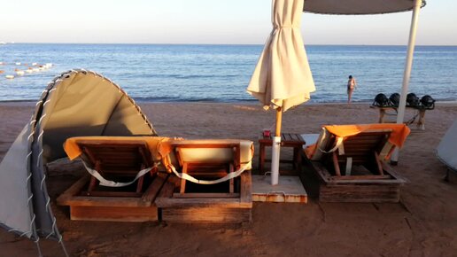 Удобства на пляже в отеле Rixos Premium Magawish Suites & Villas. Египет, Хургада.