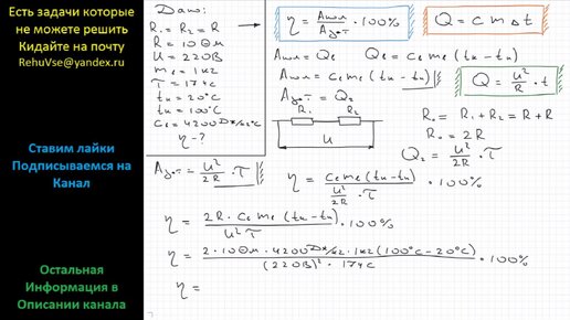 Физика Две спирали электроплитки сопротивлением по 10 Ом каждая соединены последовательно и включены в сеть с напряжением 220 В Вода массой