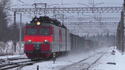 Электровоз ВЛ11.8-805_806 с грузовым поездом, ст. Александров-2, БМО ж_д. 30 января 2021 г.