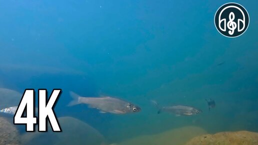 Расслабляющее видео. Звуки подводной реки с плавающими рыбками.