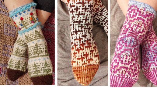 Вязальныйvlоg ОЧЕРЕДНАЯ ПАРТИЯ НОСКОВ УЗОРОМ ЛЕНИВЫЙ ЖАККАРД #носки_спицами ЁЛКИ РОМБИКИ МОЗАИКА