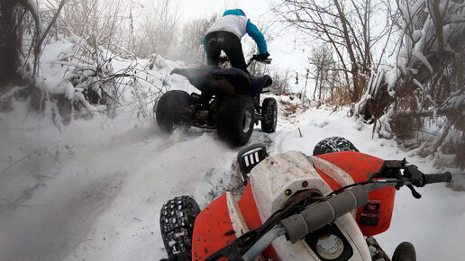 Покатушки на квадроциклах 200 250 зимой / Погнул руль