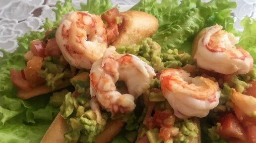Тосты с креветками и гуакамоле