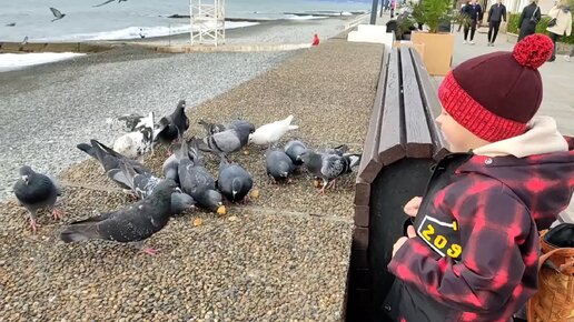Ещё один зимний день в Адлере.Погода и море 🌊🧑🤝🧑Кормим птиц 🐦🕊️ Купила жилет 🦺 Плаваем до ночи 🤽🌜Декабрь 2022 🎄🌅🧑🎄