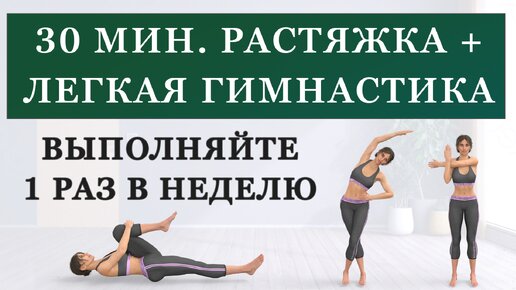 Растяжка + легкая гимнастика на 30 минут: 60 упражнений для хорошей мобильности (стоя и лежа)