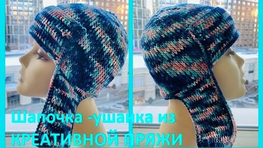 Шапка УШАНКА из Креативной ПРЯЖИ , Вязание КРЮЧКОМ , crochet hat ( Ш № 213)