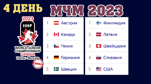 ЧМ по хоккею 2023 (U20). 4 день. Результаты, расписание, таблица. Кто в ¼?