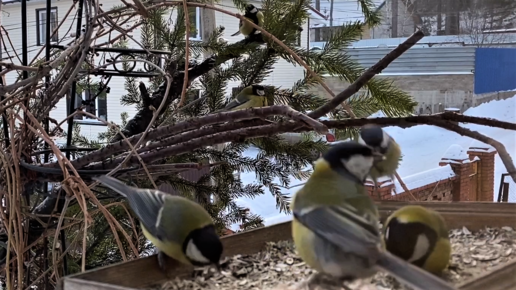 Милые синицы мирно завтракали, а потом прилетела ОНА!