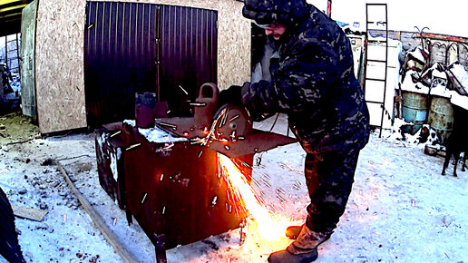 Самый дешёвый гараж-мастерская готов! Сделал печку, вставил дверь!