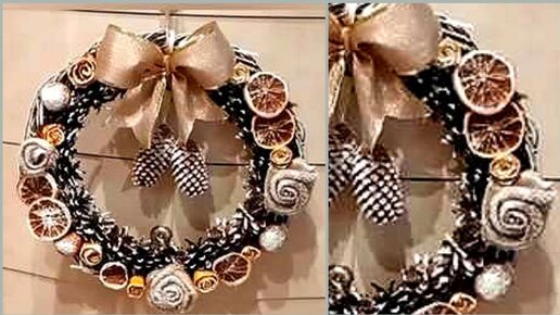 Новогодний венок на дверь из природных материалов. Поделки из шишек.