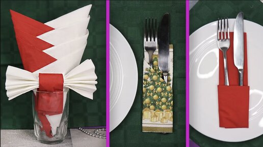 Как КРАСИВО и ПРОСТО СЛОЖИТЬ САЛФЕТКИ на праздничный стол - 3 идеи!