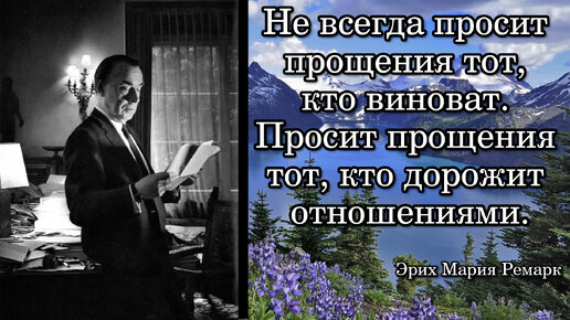 Эрих Мария Ремарк. Не всегда просит прощения тот, кто виноват. Просит прощения тот, кто дорожит отношениями.