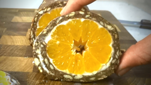 10 минут и вкусный праздничный рулет с мандаринами готов! Без выпечки, без добавления сахара!