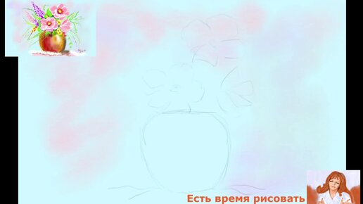 Ваза с розовыми и сиреневыми цветами. Рисую цветы, фантазия на цветочную тему