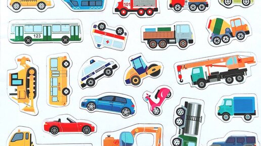 Транспорт - собираем магнитные пазлы для детей. МАШИНКИ, АВТОБУС, САМОСВАЛ, БЕТОНОМЕШАЛКА, БУЛЬДОЗЕР.