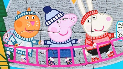 Свинка Пеппа, Киска Кэнди и Крольчонок Реббека в горах. Собираем пазлы из мультфильма Свинка Пеппа.