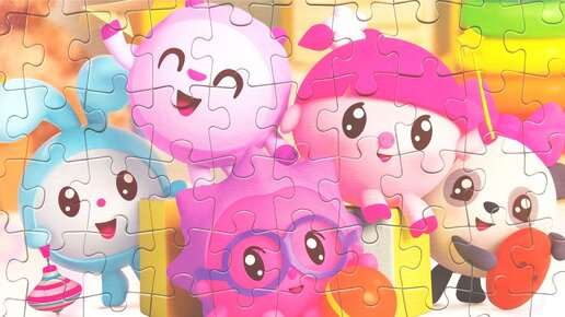 Малышарики Крошик Ёжик Пандочка Барашик и Нюшенька - собираем пазлы из мультфильма Малышарики.