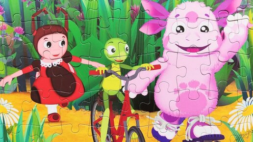Лунтик и его друзья Мила и Кузя играют вместе. Собираем пазлы для детей из мультфильма Лунтик.
