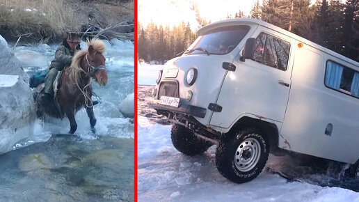 Зимние переправы через бурные реки в горах Алтая. Сайлюгемский национальный парк. Фрагмент фильма Ивана Усанова "В заповедном Аргуте".