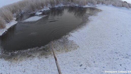 Зимняя рыбалка на паук подъемник. Рыба кипит в ручье.