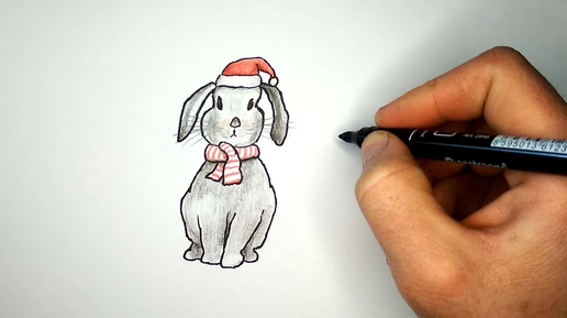 Как нарисовать Кролика в шапке Деда Мороза
