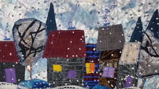 Вышила снег Милая зима с аппликацией на ткани #текстильнаяпицца