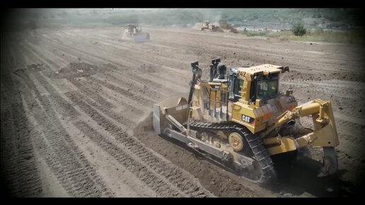 Команда из четырех бульдозеров Caterpillar D9T и Komatsu D275AX выравнивает огромный участок под стройку