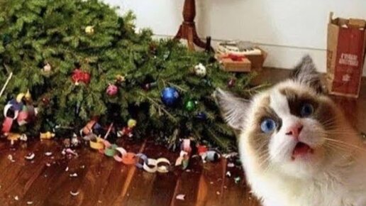 Новогодняя подборка 2023/кошки и екли/самые смешные видео с кошками/10 минут смеха