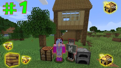 1 15 2 НА СЛОЖНОМ #1 САМОЕ НАЧАЛО НАШЛИ ПЧЕЛИНЫЙ УЛЕЙ ПОСТРОИЛИ СТАРТОВЫЙ ДОМ MINECRAFT ВЫЖИВАНИЕ