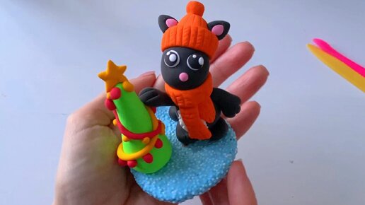 лепим котика в шапке из воздушного пластилина❤️🐱 Простая лепка для детей. #воздушныйпластилин #лепкасдетьми