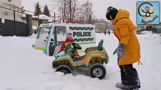 Дети и Машина. Полицейская машина застряла в снегу. Манкиту