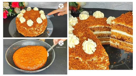 Торт ленивый медовик за 30 минут на сковороде без раскатки коржей самый простой и вкусный рецепт