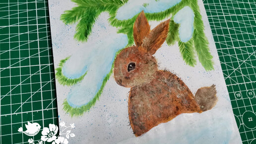 Зайчик на снегу - интересный зимний рисунок проще простого
