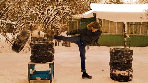 Начни Новый год с тренировки! Удары руками и ногами по шинам под песню Цоя "Муравейник".