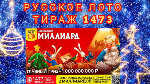 НОВОГОДНИЙ МИЛЛИАРД РУССКОЕ ЛОТО ТИРАЖ 1473 ОТ 01 ЯНВАРЯ, ПРОВЕРИТЬ БИЛЕТ, СТОЛОТО
