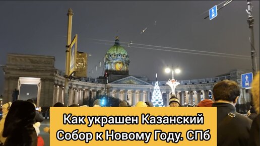 Как украшен Казанский Собор на Новогодние праздники. Интересная проекция Богородицы на куполе