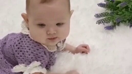 Моя внучка в моих вязаных одежках. Эвелине 5 месяцев. Новый год.
