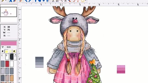 Тильда с санками. Моя авторская схема вышивки крестиком. От иллюстрации к схеме.