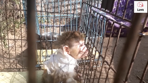 Раненую обезьяну держали в клетке!
