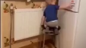 И смешно и грустно одновременно)) Малышка пытается забраться в холодильник, но он очень коварный тип!