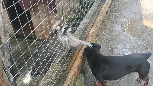 Собака каждый день приходит к вольеру с енотами, чтобы они еë погладили.