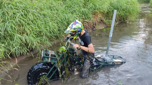 Небольшой брод на полноприводном мотоцикле