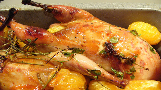 Новогоднее меню. Перепелки фаршированные мандаринами, изюмом и черносливом.